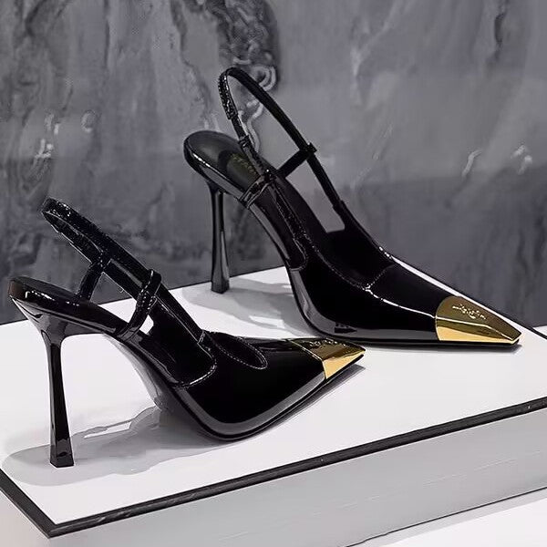 Women's Metal Square Toe Stiletto Cap Black Heels