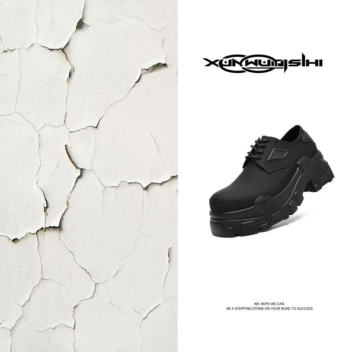 Big Head Fashion Black Ankle Thick Sole Height Leather Shoes