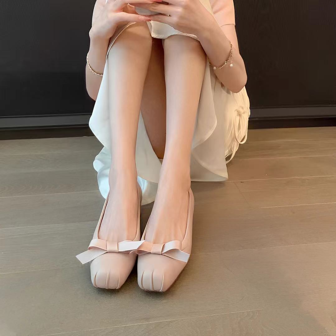 Elegant Pig Nose Bow Square Head Slingback Sandals