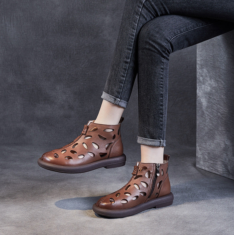 Hole Fashion First Layer Cowhide Side Zipper Sandals