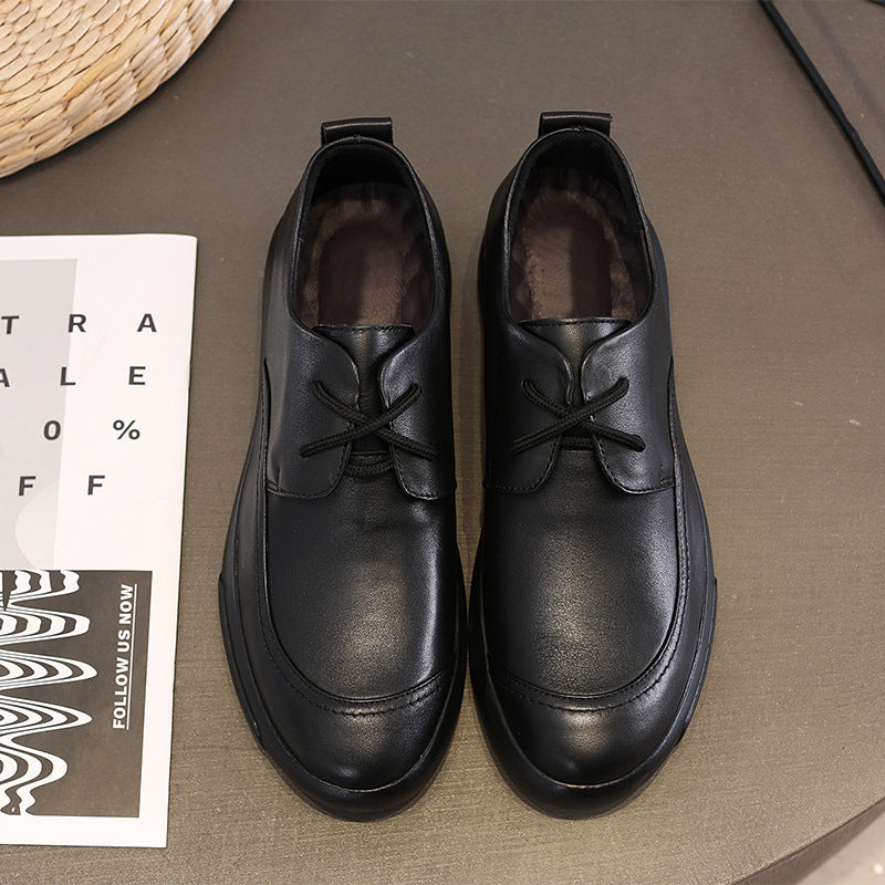 Men's Business Comfortable First Layer Cowhide Platform Flat Heels