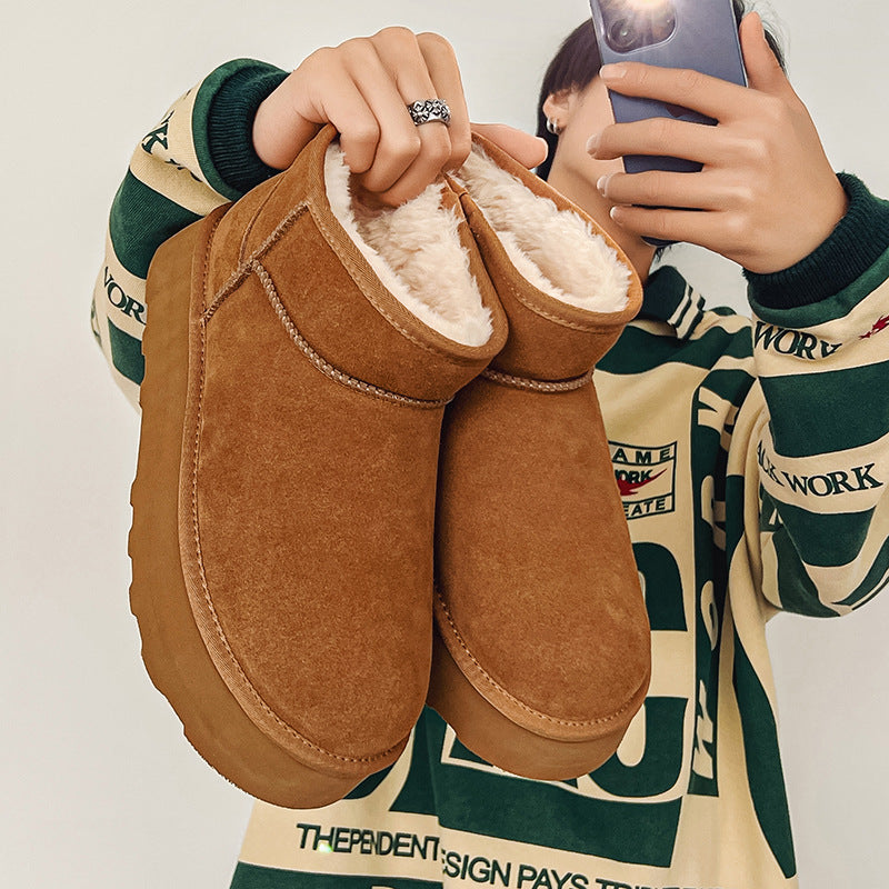 Men's Cow Suede Waterproof One Pedal Thick Snow Boots