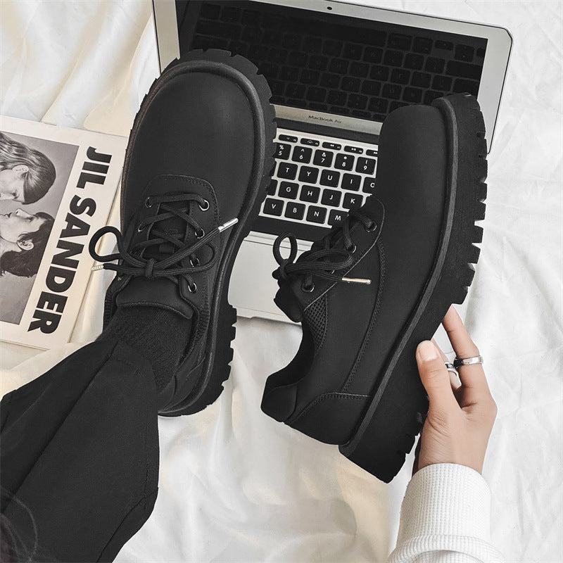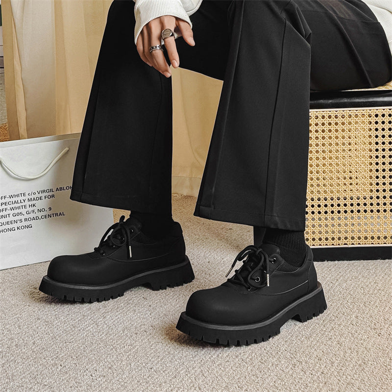 Men's Derby Niche Thick Bottom Increased Carbon Round Leather Shoes