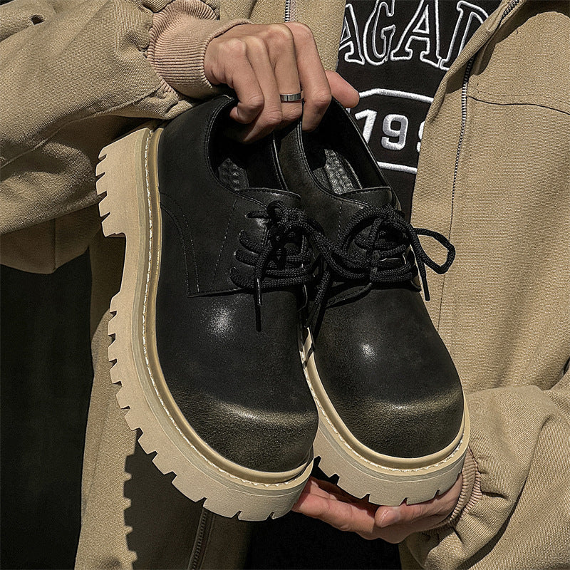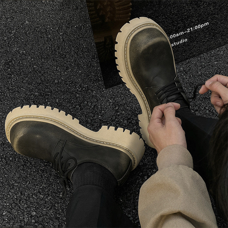 Men's Derby Thick Bottom Increased Mickey Big Head Leather Shoes