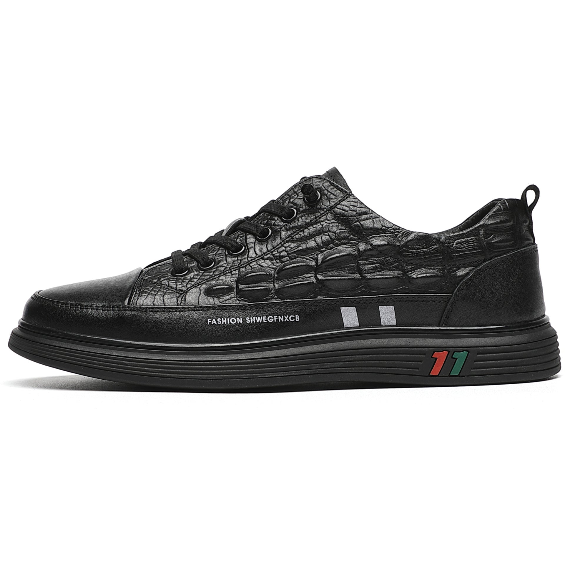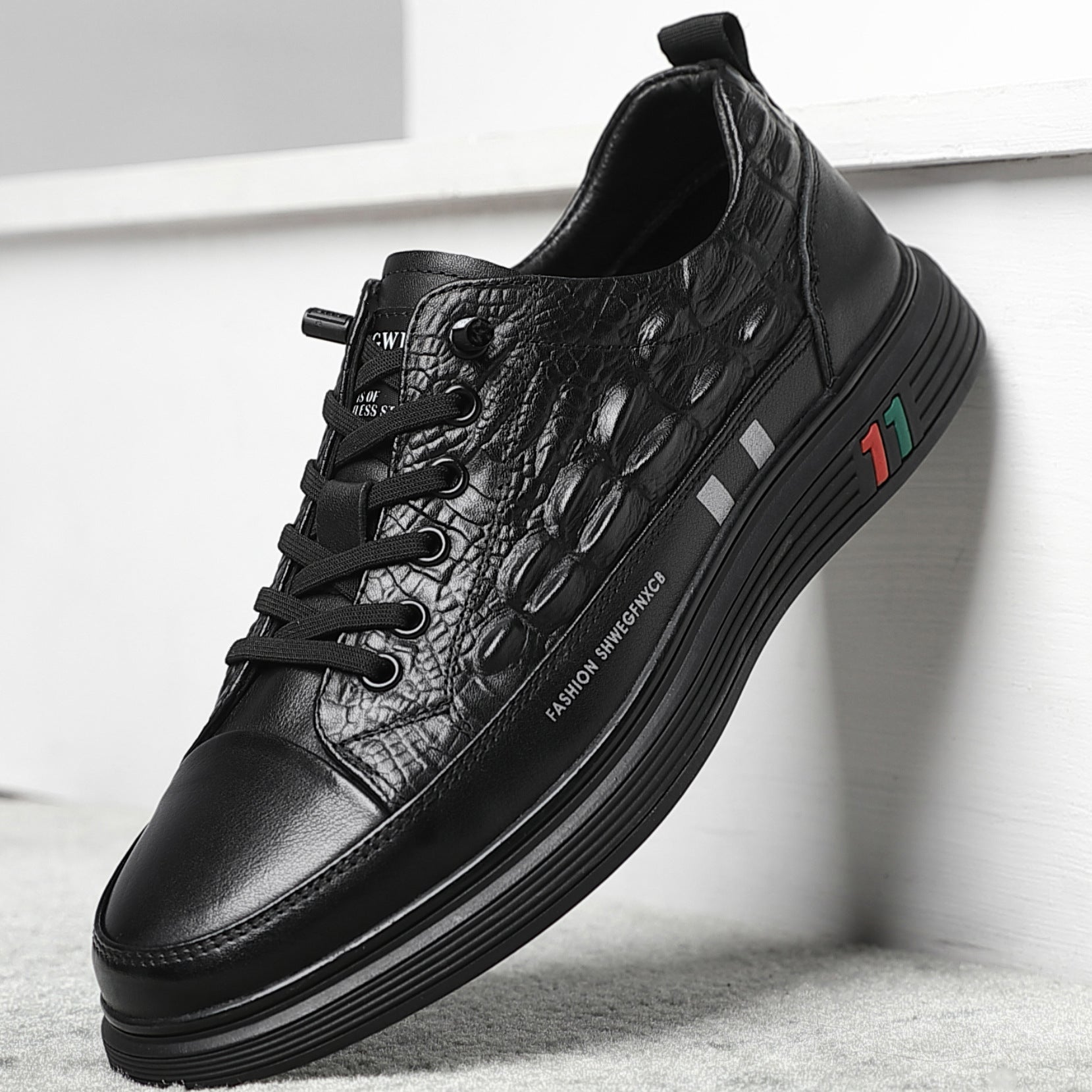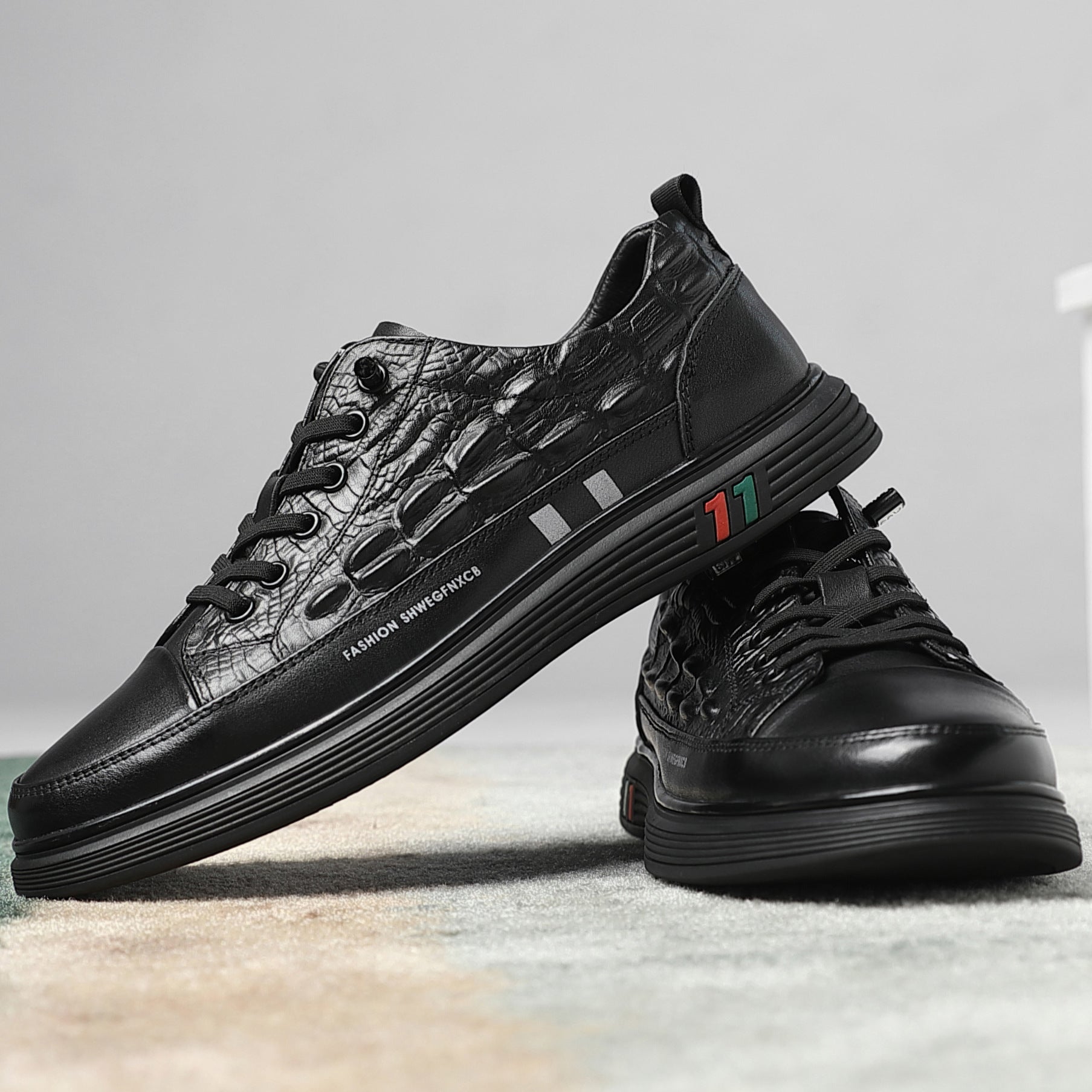 Men's First Layer Cowhide Crocodile Pattern Trendy Casual Shoes