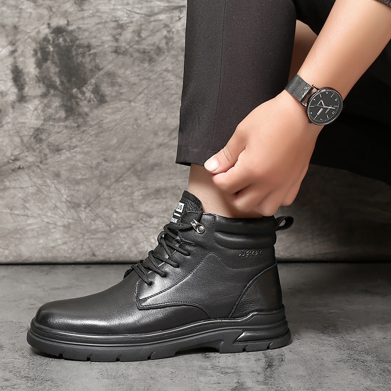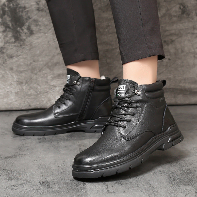 Men's Fur First Layer Cowhide High-grade Winter Snow Boots