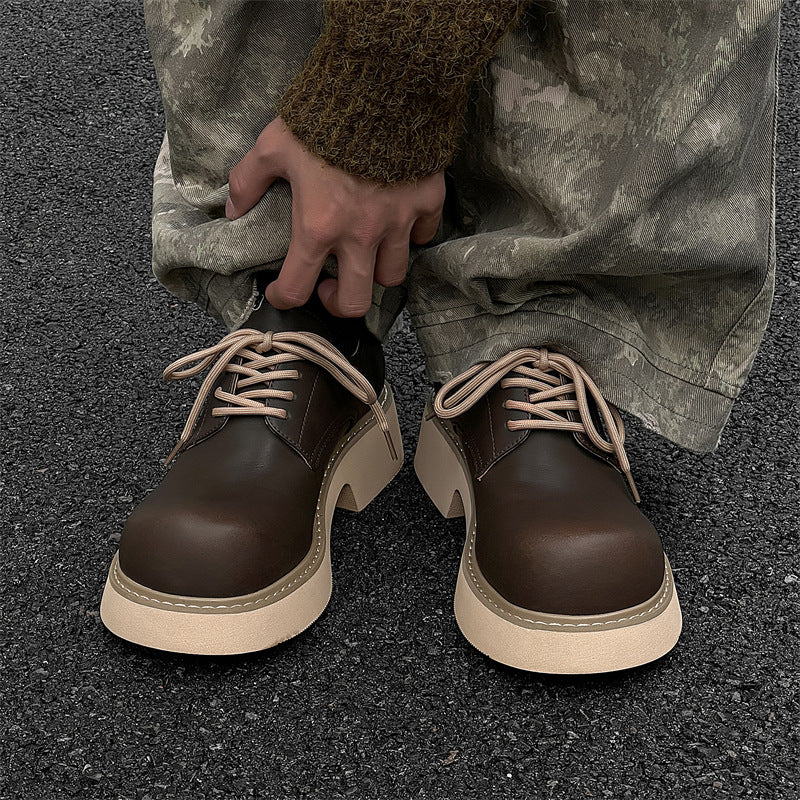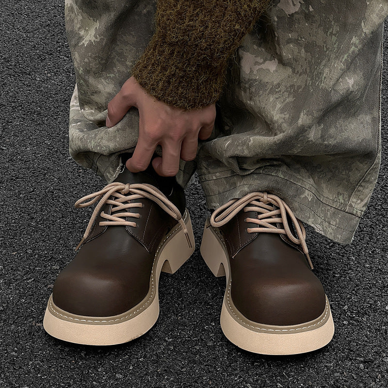 Men's Round Head Leisure Light Thick Bottom Increased Big Leather Shoes