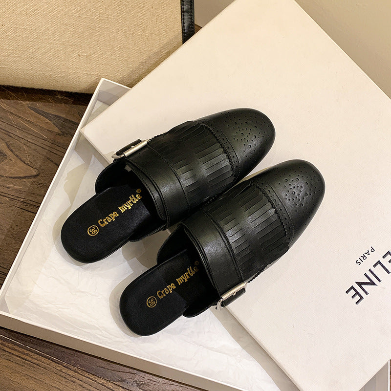 Mom Calfskin Vintage Brogue Carved Tassel Sandals