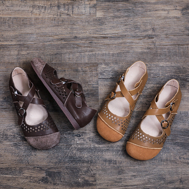 Women's Art Genuine Flat Hollowed Summer Hole Sandals