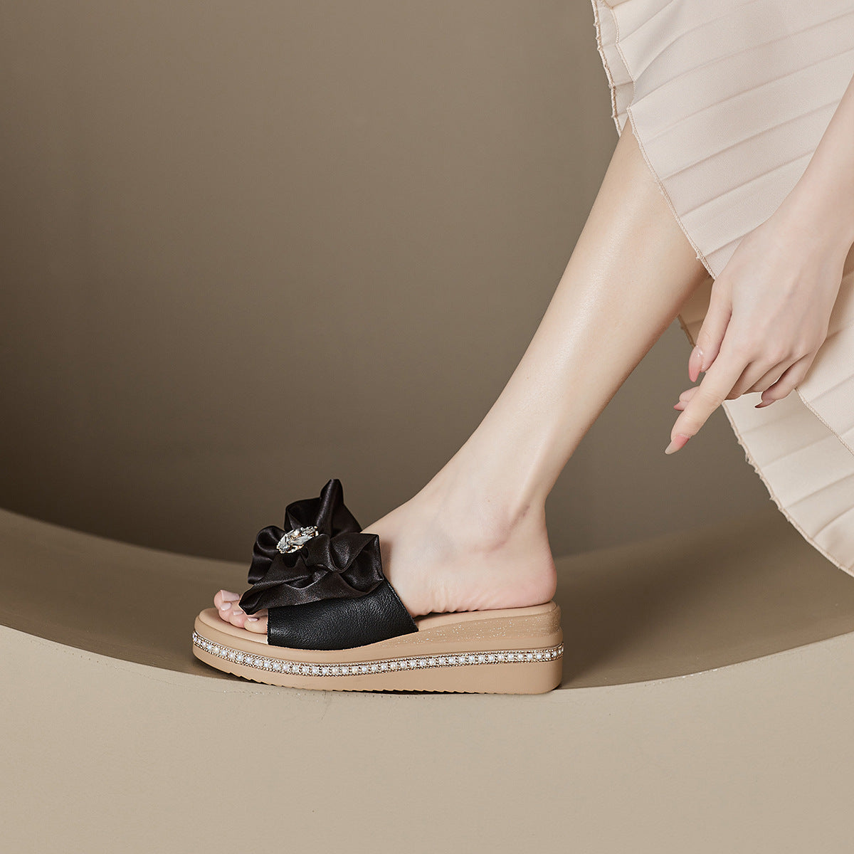 Women's Authentic Rhinestones Pansy Thick Bottom High-rise Slippers