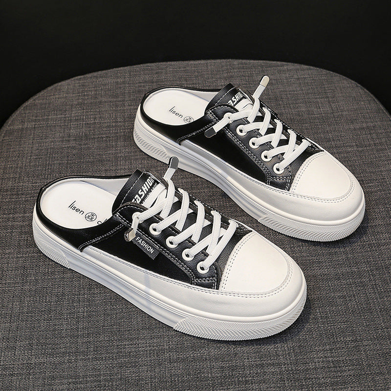 Women's Authentic Toe Box Half Outer Wear Flat Slippers