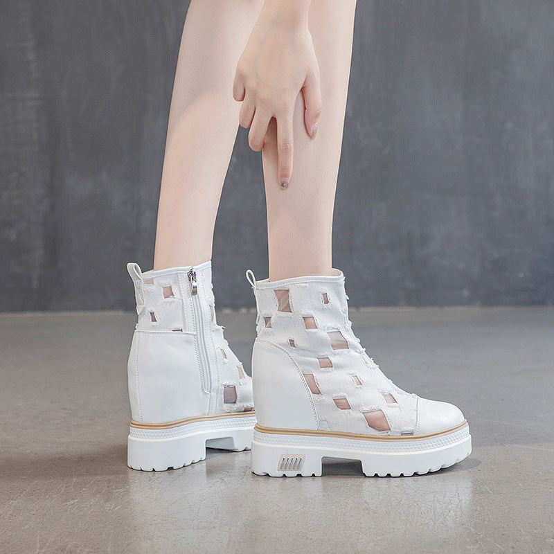 Women's Bottom Toe Cap Thin Breathable Mesh Height Increasing Heels