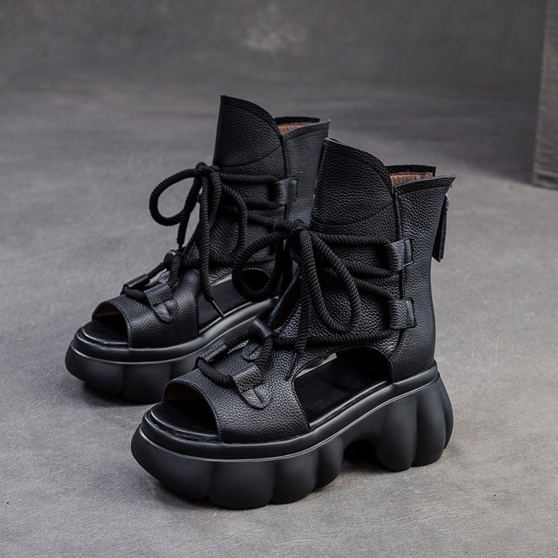 Women's Breathable Peep Toe Platform Retro Round Sandals