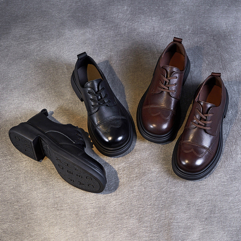 Women's Breathable Platform Black Authentic Single-layer Round Loafers