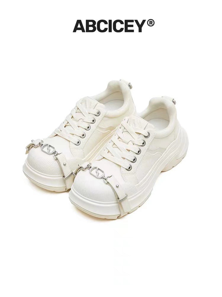 Women's Chocolate Engraved White Platform Height Increasing Sneakers