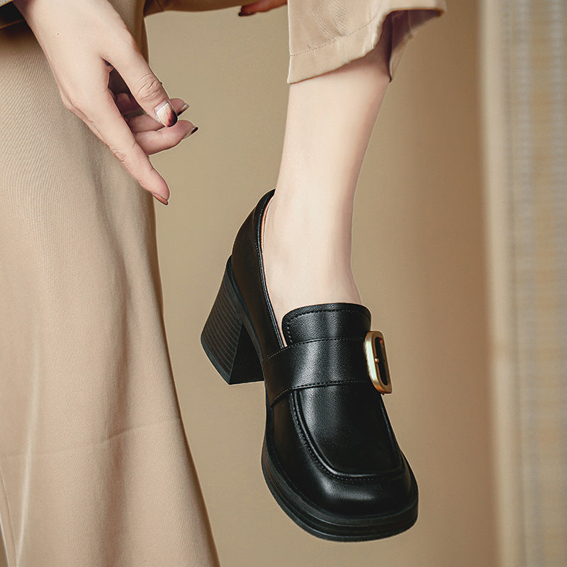 Women's Chunky Pumps Vintage Buckle High-cut Authentic Loafers