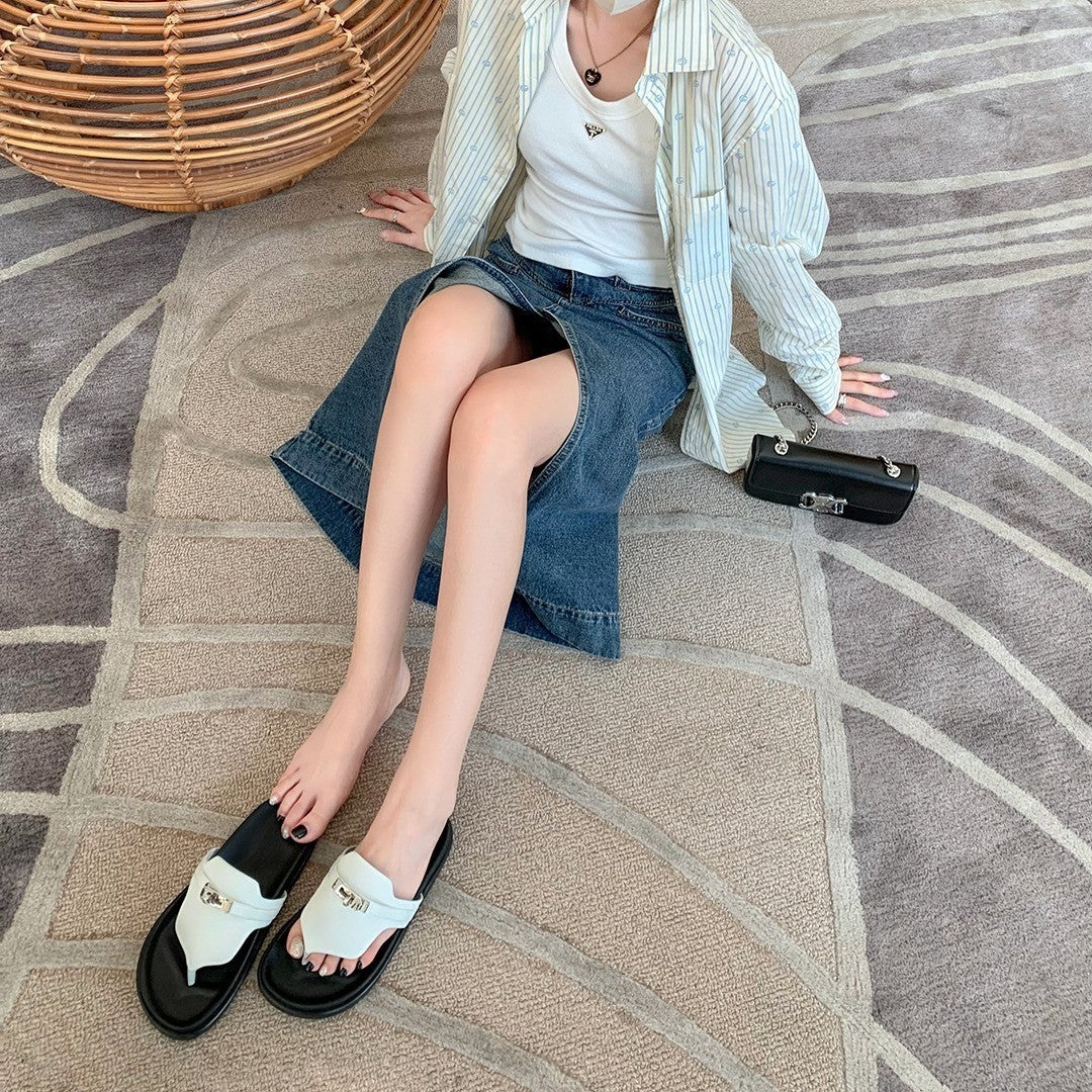 Women's Classic Engraved Lock Thick Bottom Toe Flip-flops Slippers