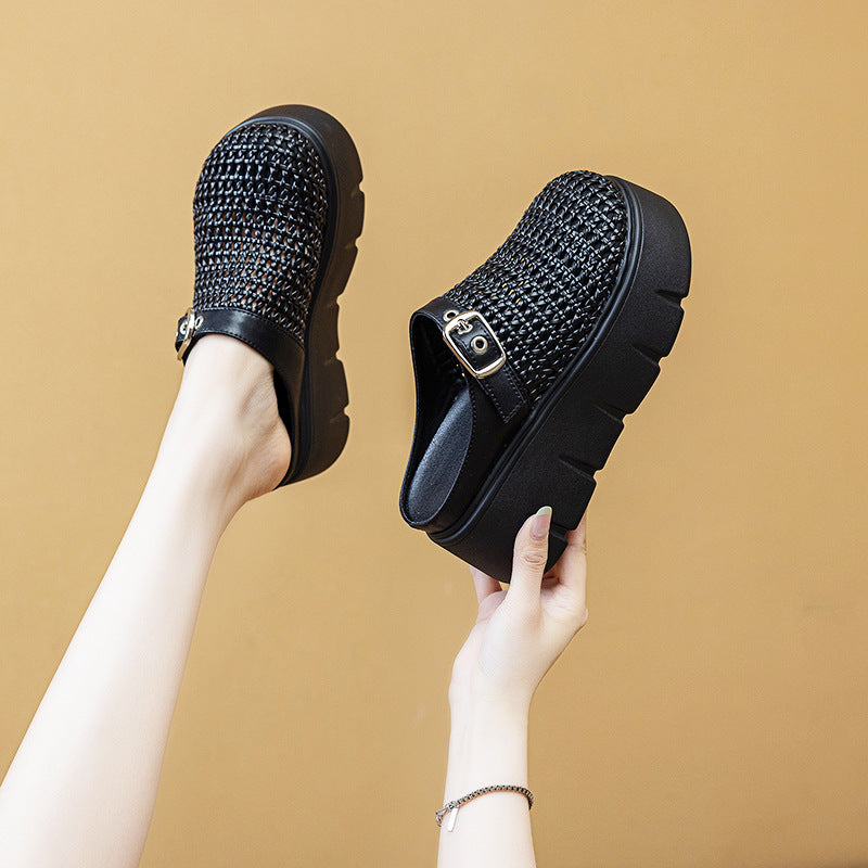 Women's Closed Toe Vintage Weave Half Platform Slippers