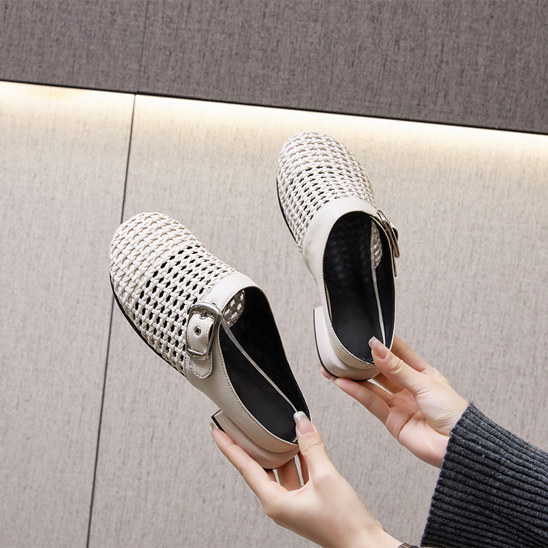 Women's Closed Toe Woven Korean Buckle Outer Sandals
