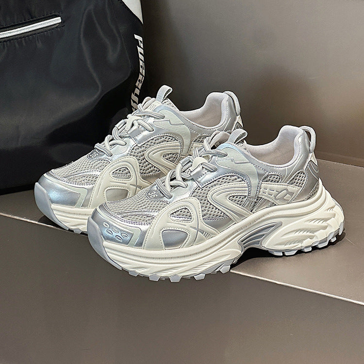 Women's Clunky Spring Mesh Breathable Thick Bottom Show Feet Sneakers