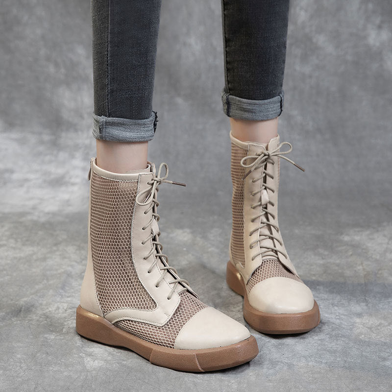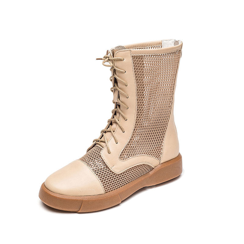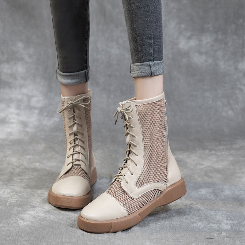 Women's Cowhide Hollow Rivet Fish Mouth Mesh Sandals