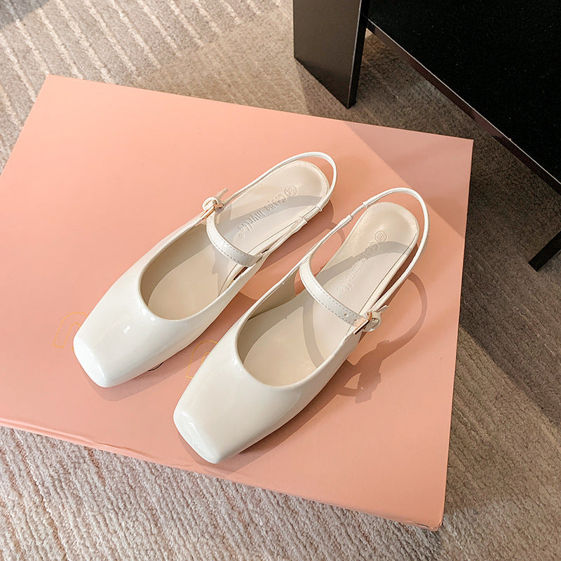 Women's Cowhide Version French Closed Toe Mary Jane Buckle Sandals