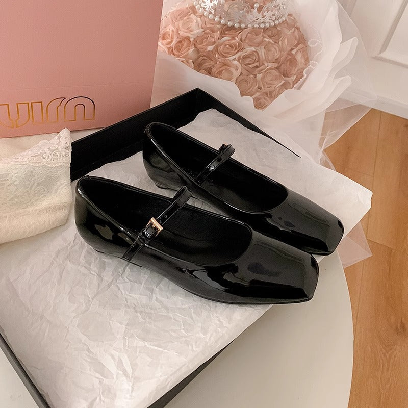 Women's Cowhide Version French Retro Square Head Buckle Mary Jane Women's Shoes
