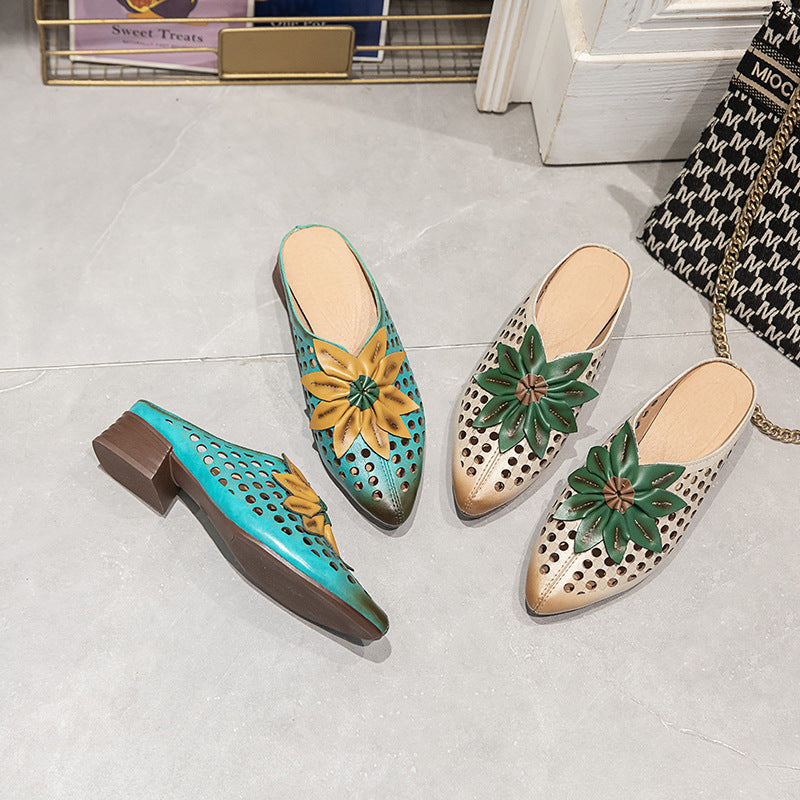 Women's First Layer Cowhide Pointed Toe Mid Heels