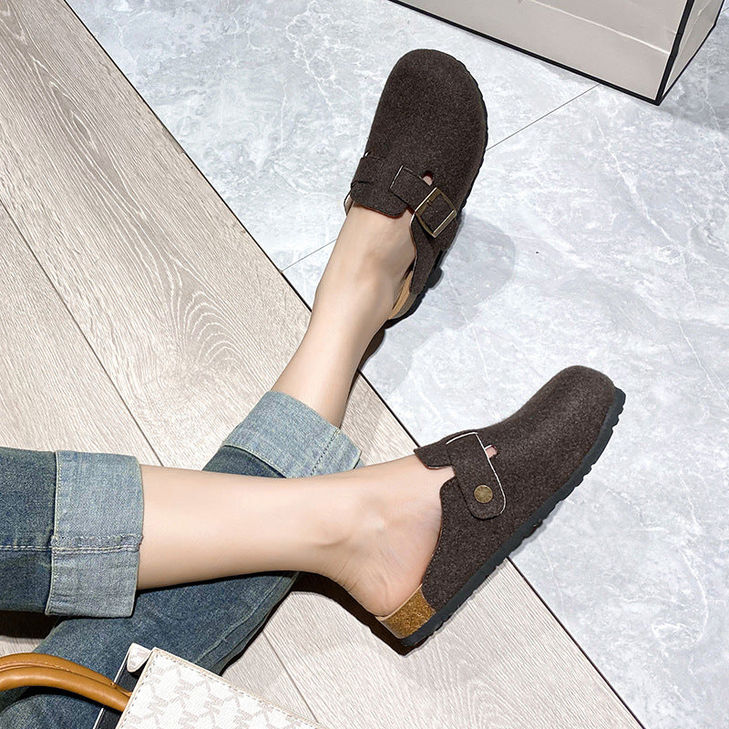 Women's Flat Large Round Toe Fluffy Thick Bottom Cap Sandals