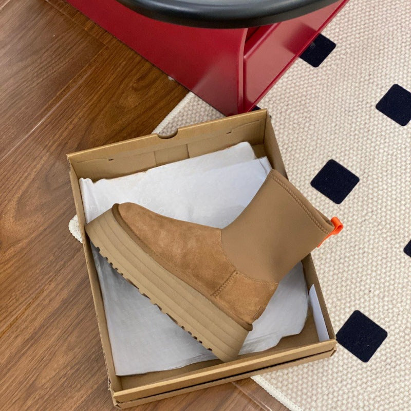 Women's Fur Integrated Elastic Fabric Height Increasing Snow Boots
