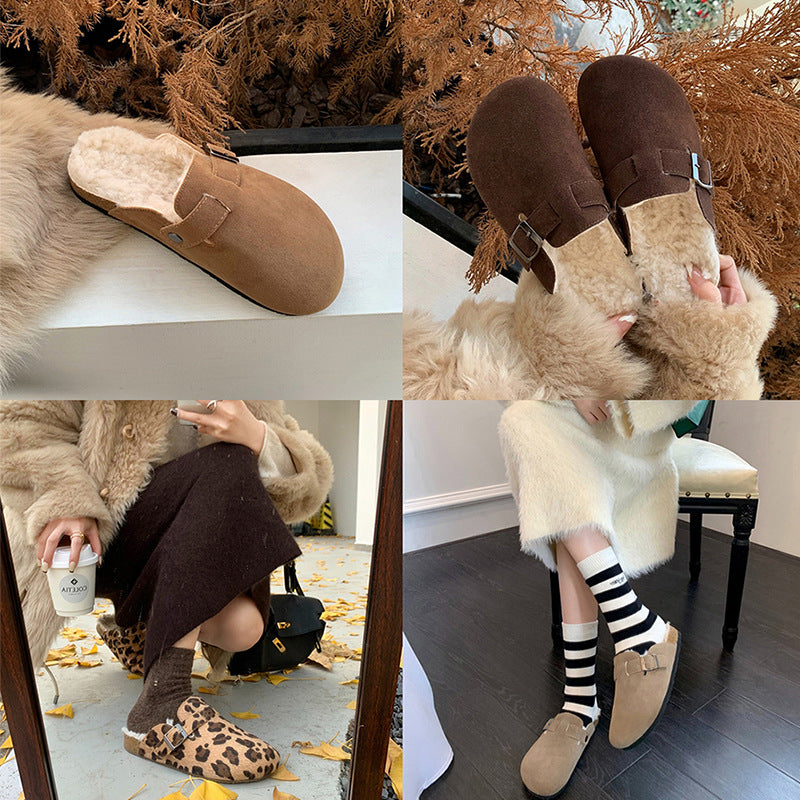 Women's Height Increasing Insole Warm Fleece-lined Slip-on Pumps Soft Casual Shoes