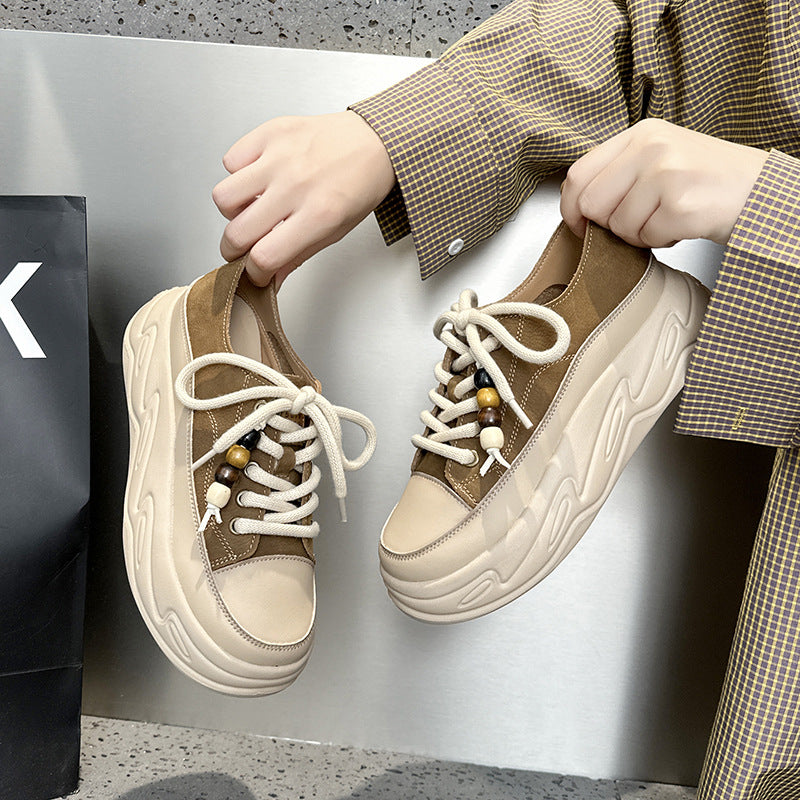 Women's Layer Cowhide Breathable Versatile Retro Sports Sneakers
