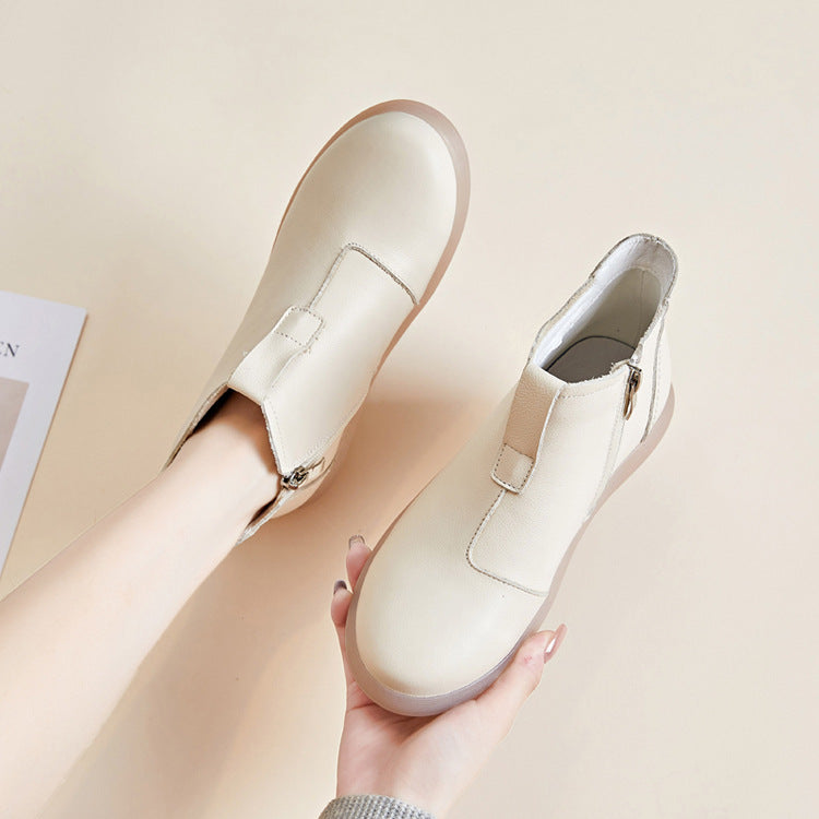 Women's Layer Cowhide Soft Bottom Mom With Women's Shoes