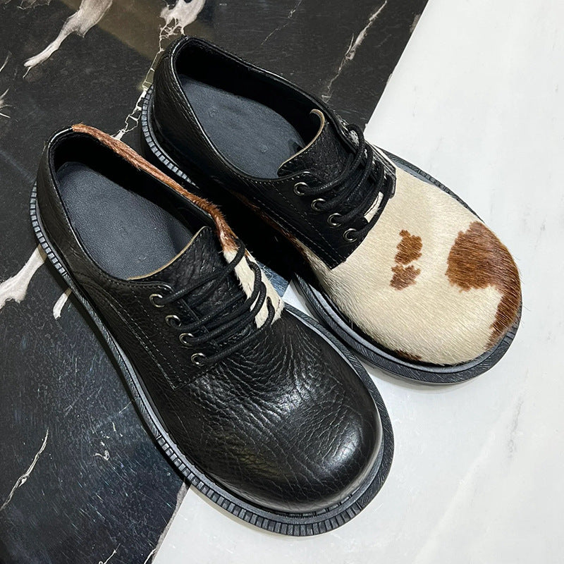 Women's & Men's Hair Derby Milk Mandarin Duck Lace Up Chunky Leather Shoes