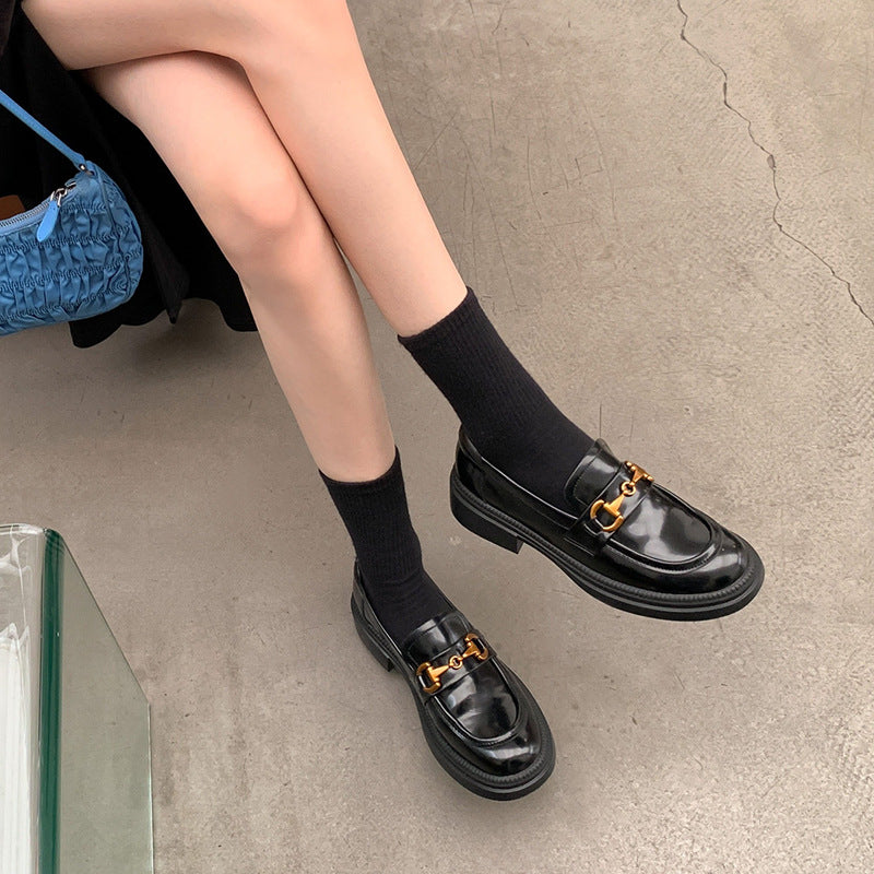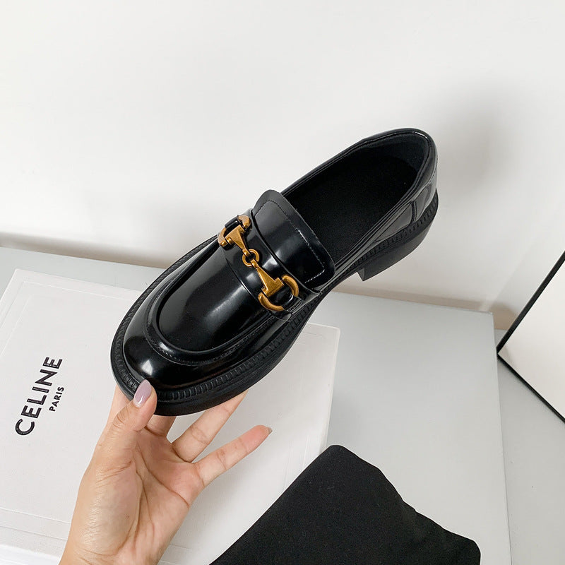 Women's Mom British Retro Golden Horse Buckle Loafers