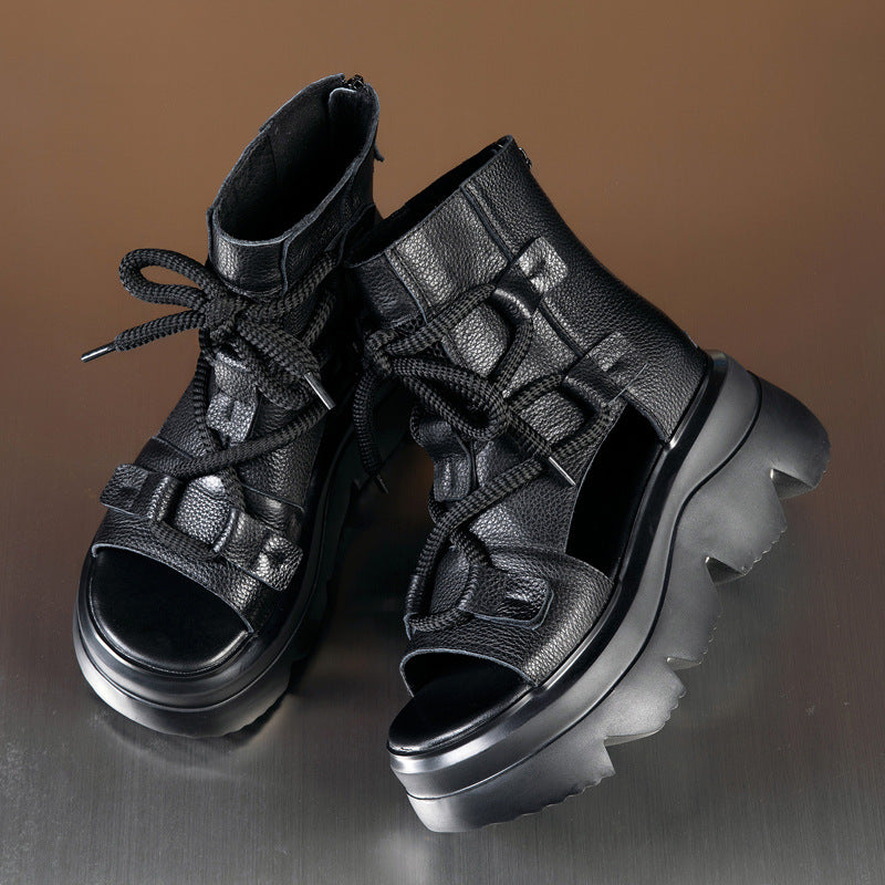 Women's Outer Wear Summer Retro Lace Up Muffin Sandals