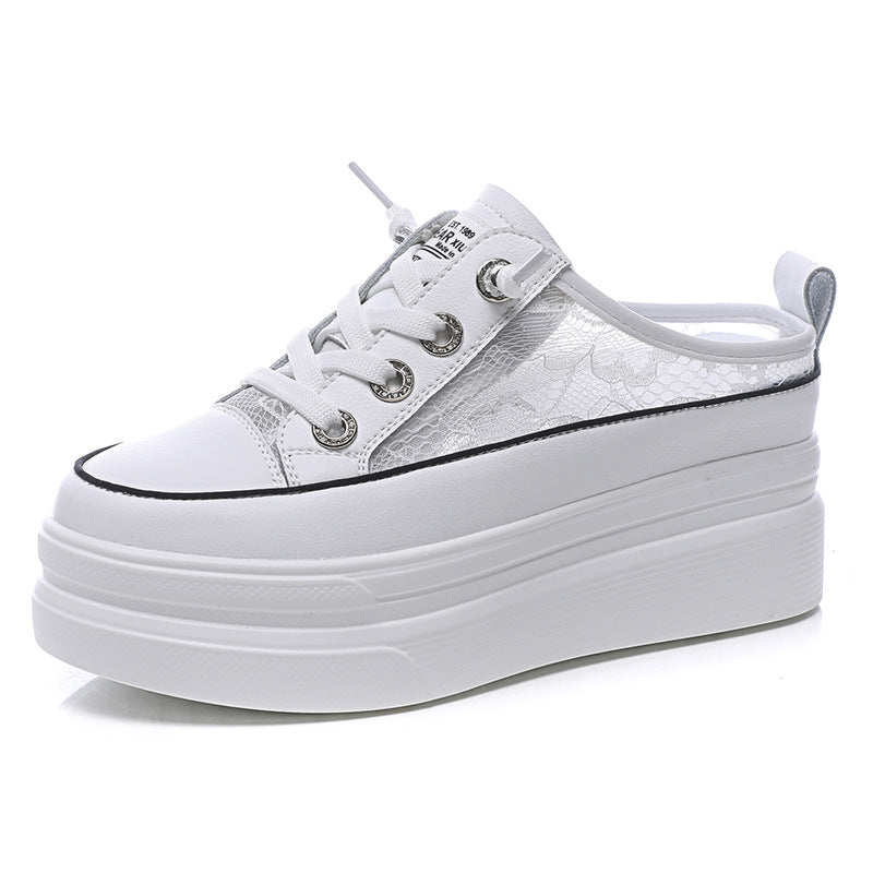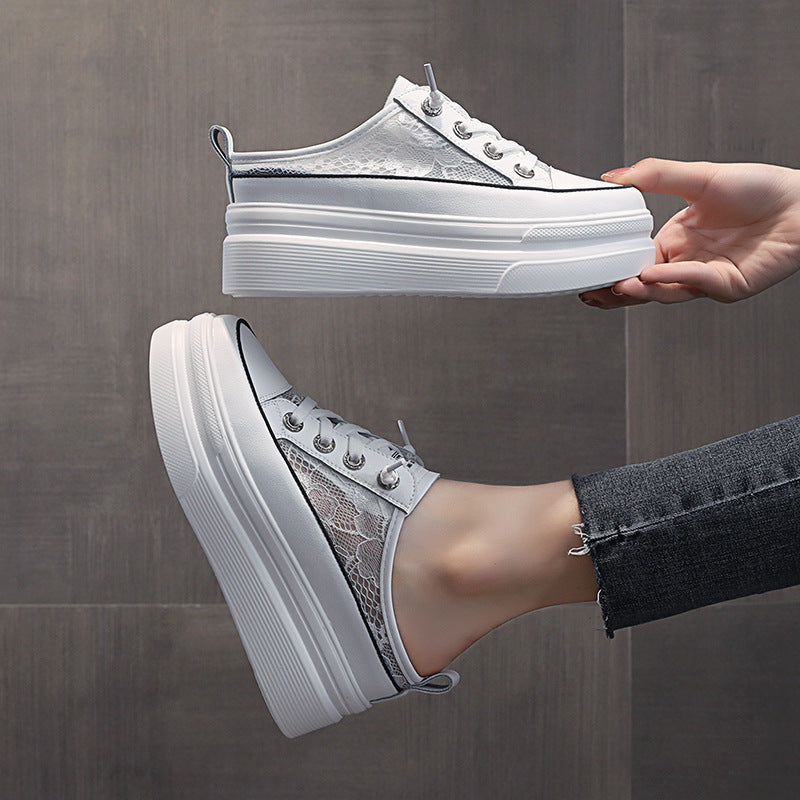 Women's Platform Muffin Lace Mesh Height Increasing Insole Slippers