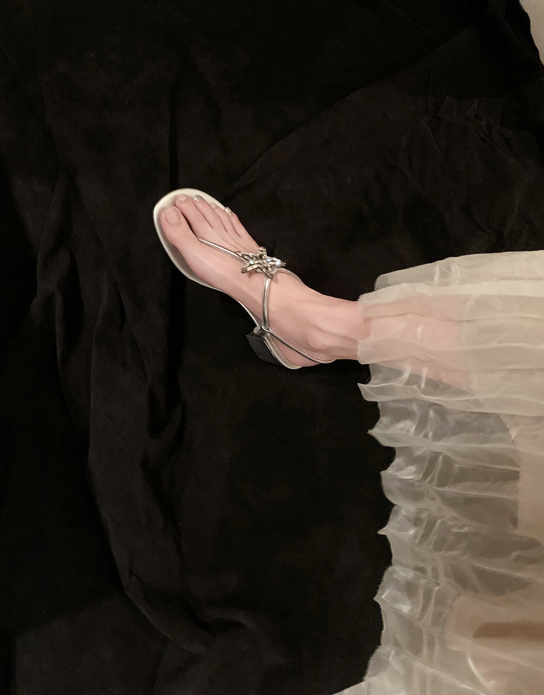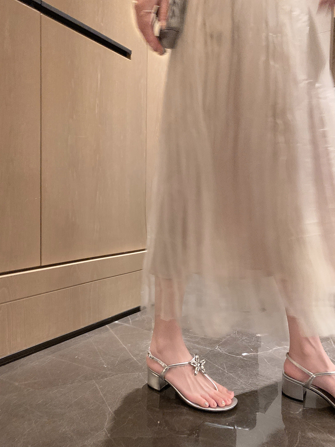 Women's Rhinestone Buckle With Clip Toe Chunky Fashion Heels