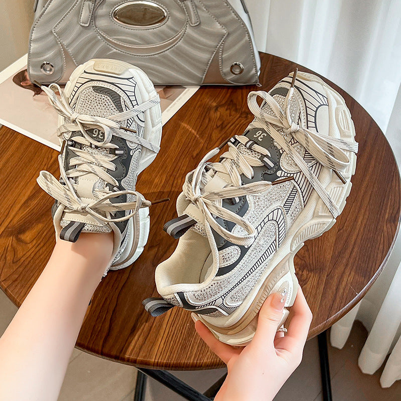 Women's Rhinestone Genuine Paris Dad Thick Bottom Sneakers