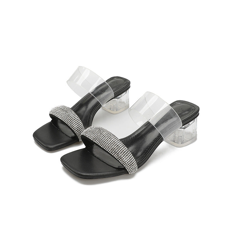 Women's Rhinestone Strap Korean Style Square Toe Heels
