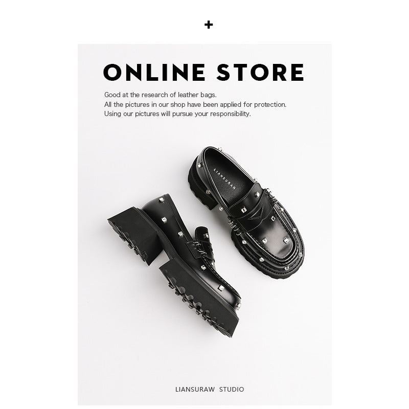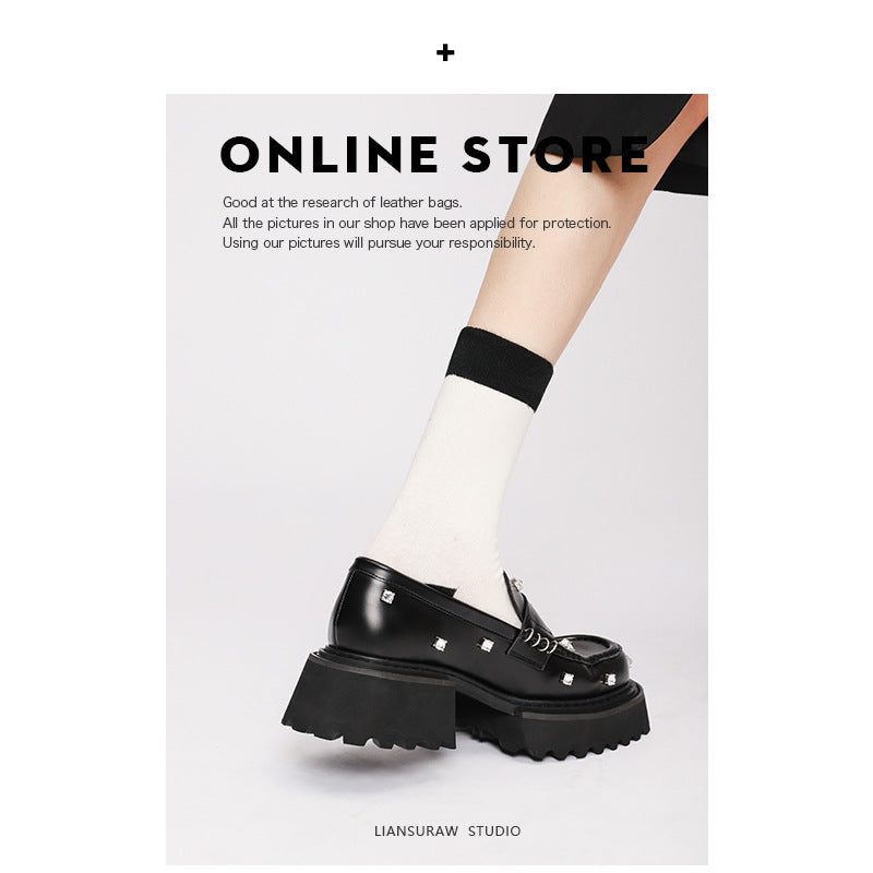 Women's Round Toe Rhinestone Thick With British Style Women's Shoes