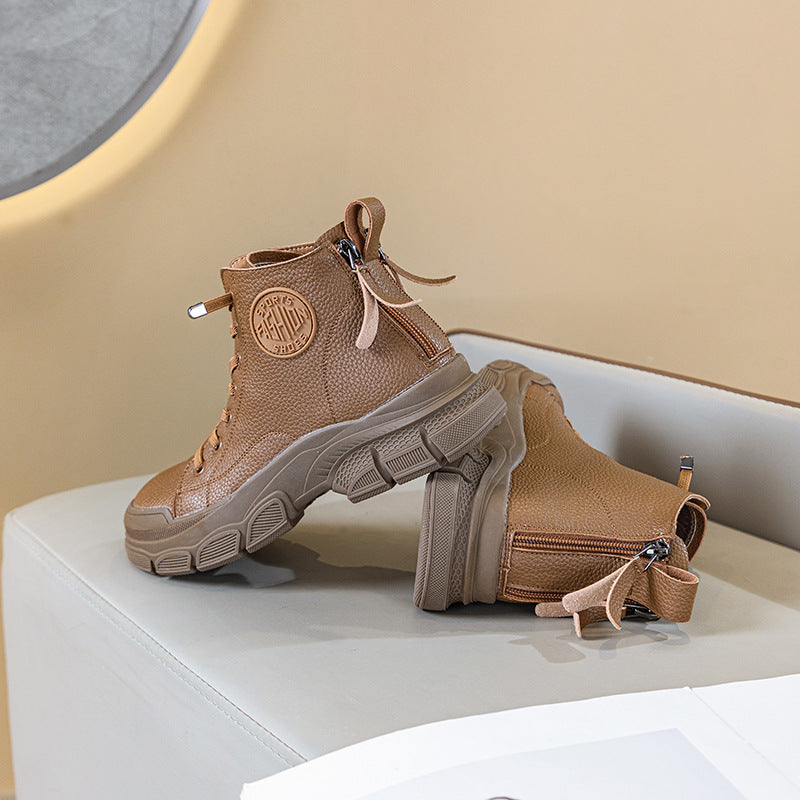 Women's Round Toe Solid Color Leisure Double Zipper Cool Sneakers