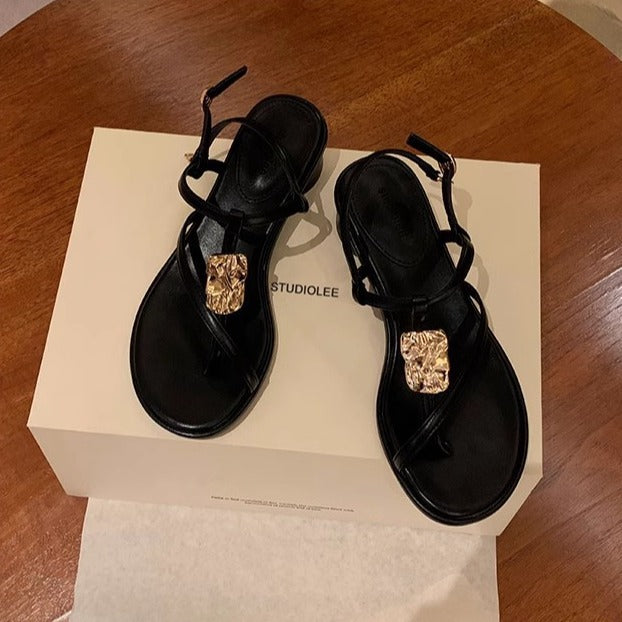 Women's Style Thin Strap Metal Buckle Chunky Heels