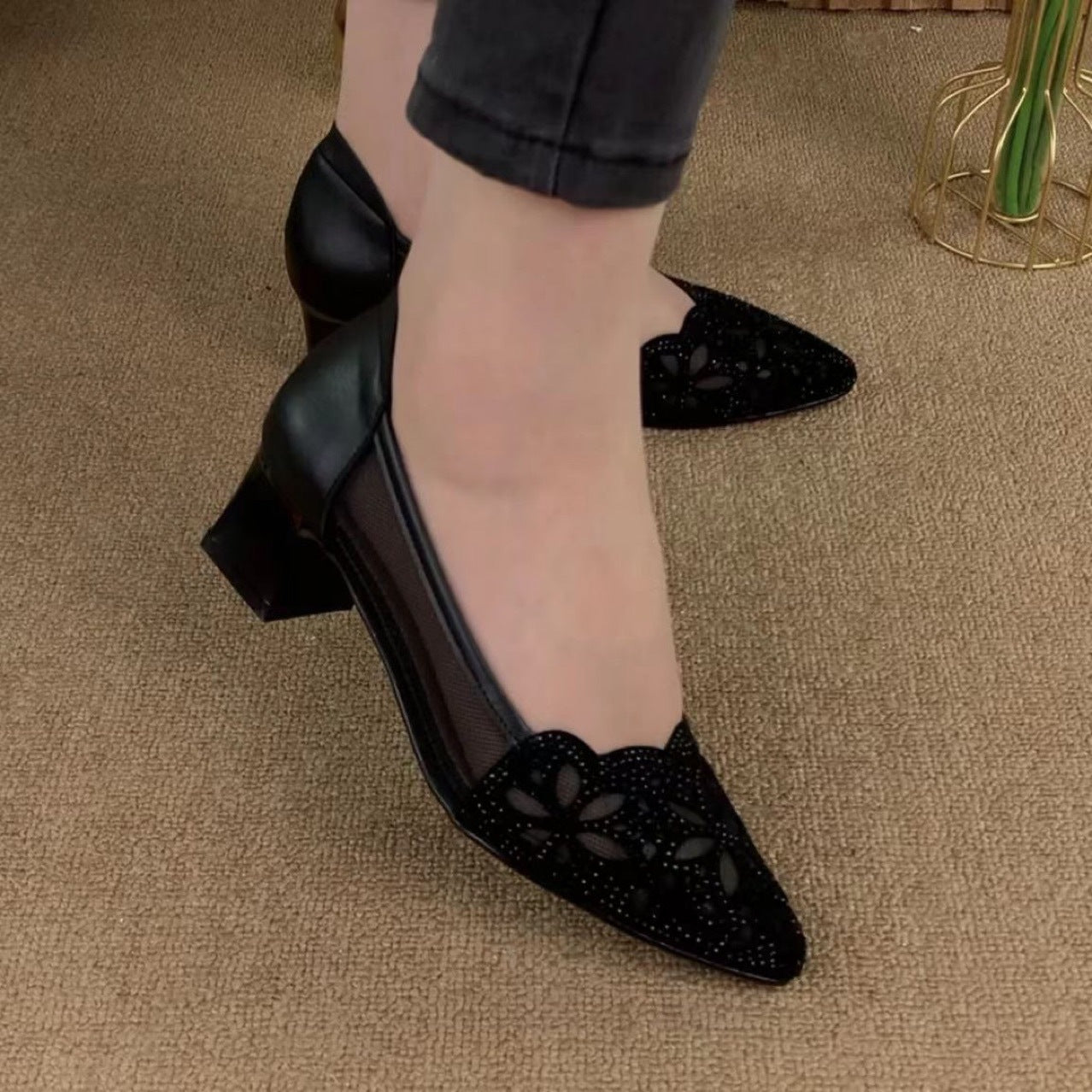 Women's Summer Closed Toe Mesh Hollow Rhinestone Sandals