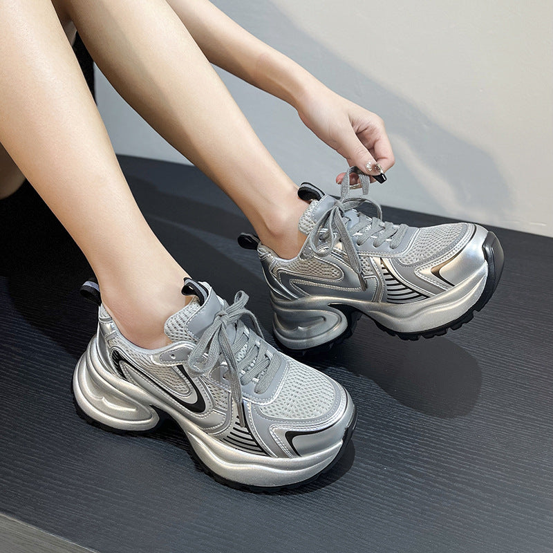 Women's Surface Clunky Height Increasing Insole Summer Breathable Thick Sneakers