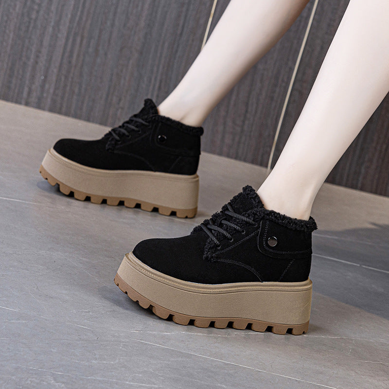 Women's Thermal Furry Winter Retro Platform Fashion Lace Snow Boots