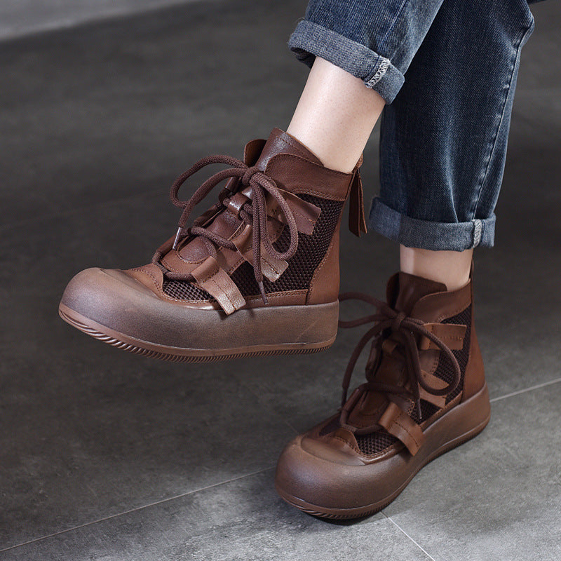 Women's Toe Roman Genuine Platform Mesh Hollow Sandals