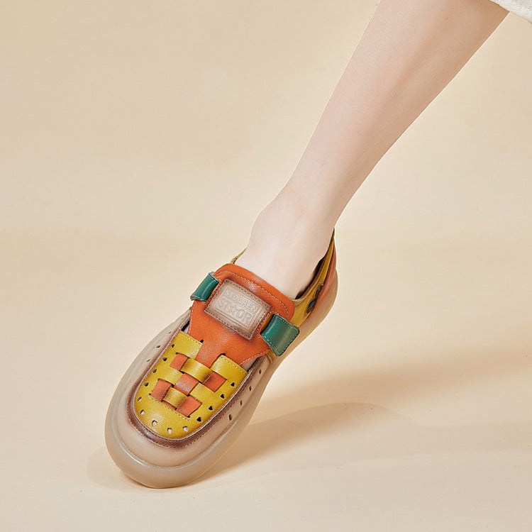 Women's Velcro Hollow Hole Roman Tendon Bottom Soft Hand-knitted Sandals