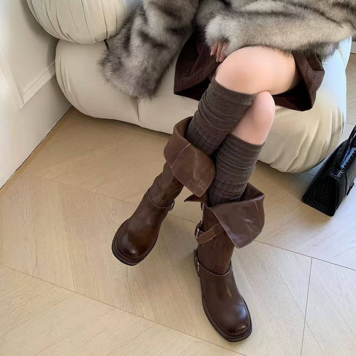 Women's Washed Horse Martin Long Buckle Boots