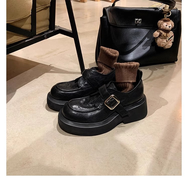 Women's Washed Shrink Horse Thick Bottom Small Loafers